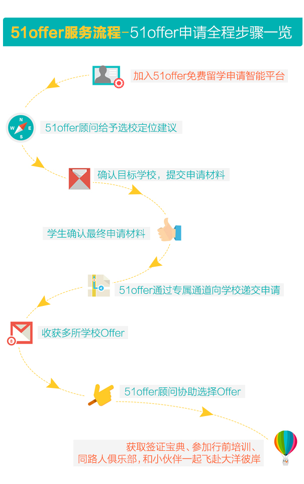 51offer提供英国、美国和澳大利亚等海外院校的免费申请服务。凭借旗下中英网UKER.net、中美网USAer.net等优秀的留学媒体和丰富的留学资讯、学校资源以及多年的专业操作经验,帮助学生申请到适合的学校。