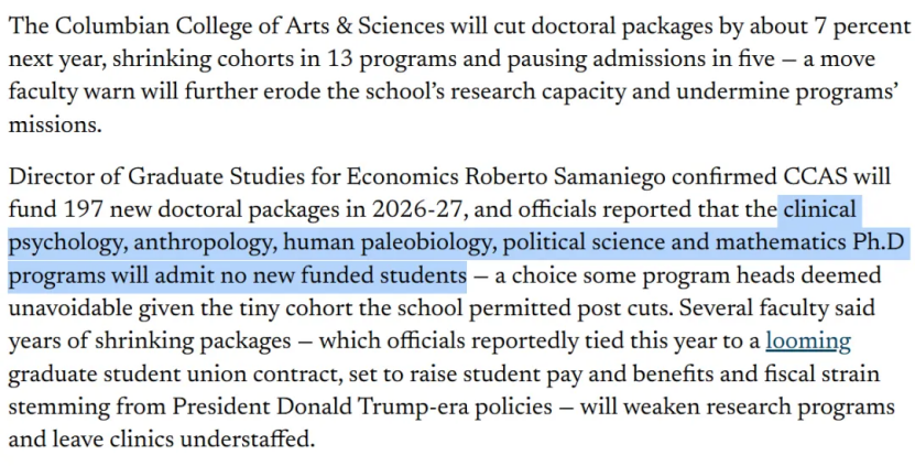 2025年发布的官方信息显示,其科学博士项目今年入学名额减少约50%,并面临长期财政赤字的背景之下,该缩减可能进一步扩大。