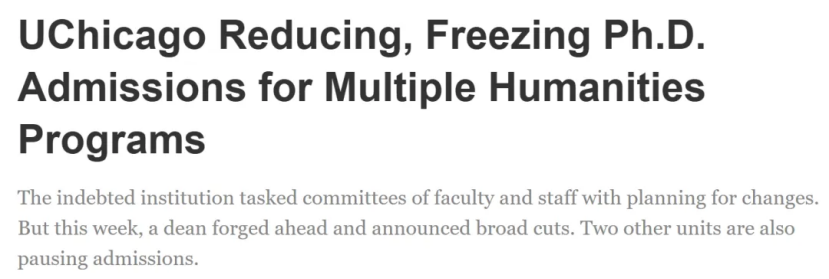 - 艺术与人文学院几乎所有系暂停博士招生(仅哲学和少数音乐项目继续开放);
